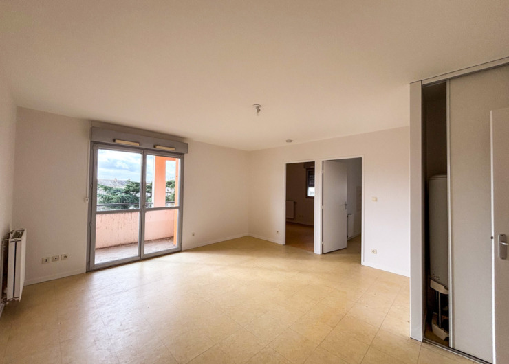 une entrée ouverte sur un séjour exposé sud-ouest donnant sur une loggia, une cuisine, une salle de bain, WC ainsi qu’une chambre.