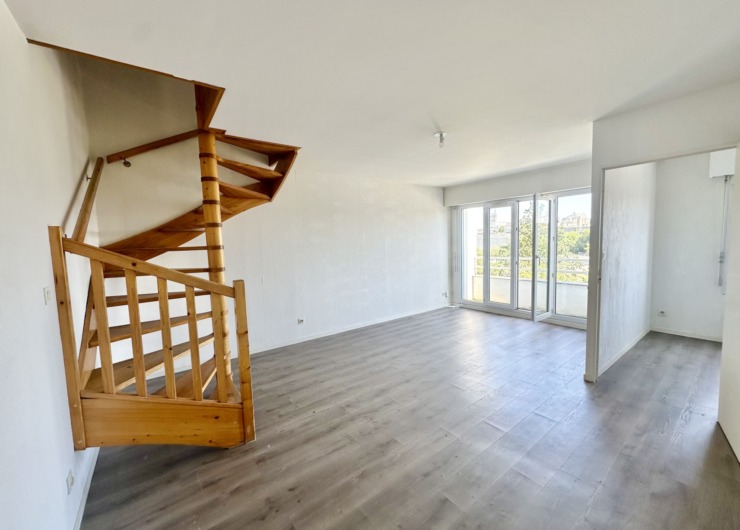 Appartement T5 duplex de 104 m², situé aux quatrième et cinquième étages d’une résidence avec ascenseur, comprenant :